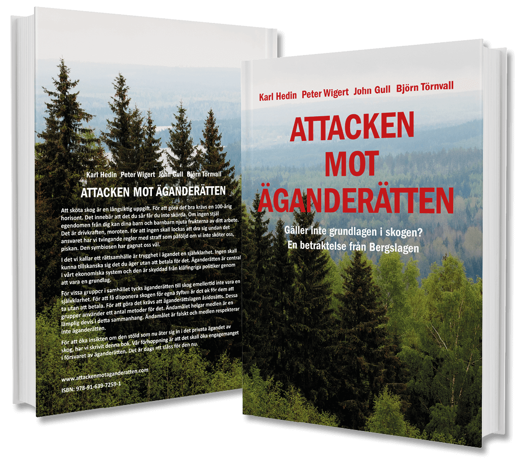 kunnat bli så tokigt samt vilka konsekvenser det leder till. En ny debatt om skogen har blossat upp. Det var många år sedan den var så kraftfull! Debattens grund återfinns i att den svenska skogsägarens grundlagsfästa rätt att äga och bruka sin mark inskränks allt mer, med motivet att den biologiska mångfalden är hotad och måste räddas. Om boken I det vi kallar ett rättssamhälle är trygghet i ägandet en självklarhet. Ingen skall kunna tillskansa sig det du äger utan att betala för det. Äganderätten är central i vårt ekonomiska system och skyddad i vår viktigaste grundlag, Regeringsformen. För vissa grupper i samhället tycks äganderätten till skog emellertid inte vara en självklarhet idag. För att få disponera skogen för egna syften är det ok för dem, att starkt begränsa brukanderätten utan att betala för sig. Det är att ta din egendom utan att betala, vilket innebär att Regeringsformen åsidosätts. Ändamålet helgar medlen är en lämplig devis i detta sammanhang, men ändamålet bygger på falsk information och medlen respekterar inte äganderätten. För att öka insikten om den attack mot äganderätten – i praktiken en normlös expropriation - som nu äter sig in i det privata ägandet av skog, har vi skrivit denna bok. Vår förhoppning är att den skall öka engagemanget för det helt nödvändiga försvaret av äganderätten. Det är dags att slåss för den nu! Om författarna Karl Hedin, tredje generationens ägare och skogsägare Peter Wigert, koncernchef AB Karl Hedin och skogsägare John Gull, råvaruansvarig AB Karl Hedin och skogsägare Björn Törnvall, Styrelseledamot AB Karl Hedin Emballage och skogsägare Om AB Karl Hedin AB Karl Hedin är en familjeägd trähandelskoncern med ca 1000 anställda. Råvara från skogarna i Bergslagen försågas och förädlas lokalt till framförallt byggprodukter och specialemballage. Byggprodukter säljs i huvudsak på svenska marknaden via den egna bygghandelskedjan. AB Karl Hedin har verkat i skogen och skogsindustrin i över 100 år. Upplevelsen av att bli utsatt för kritik av vårt agerande, tillsammans med påtvingade inskränkningar av ägandet av de skogar vi köpt in genom åren, har gjort oss frustrerade och lett till att vi försökt klarlägga vad som gäller. |